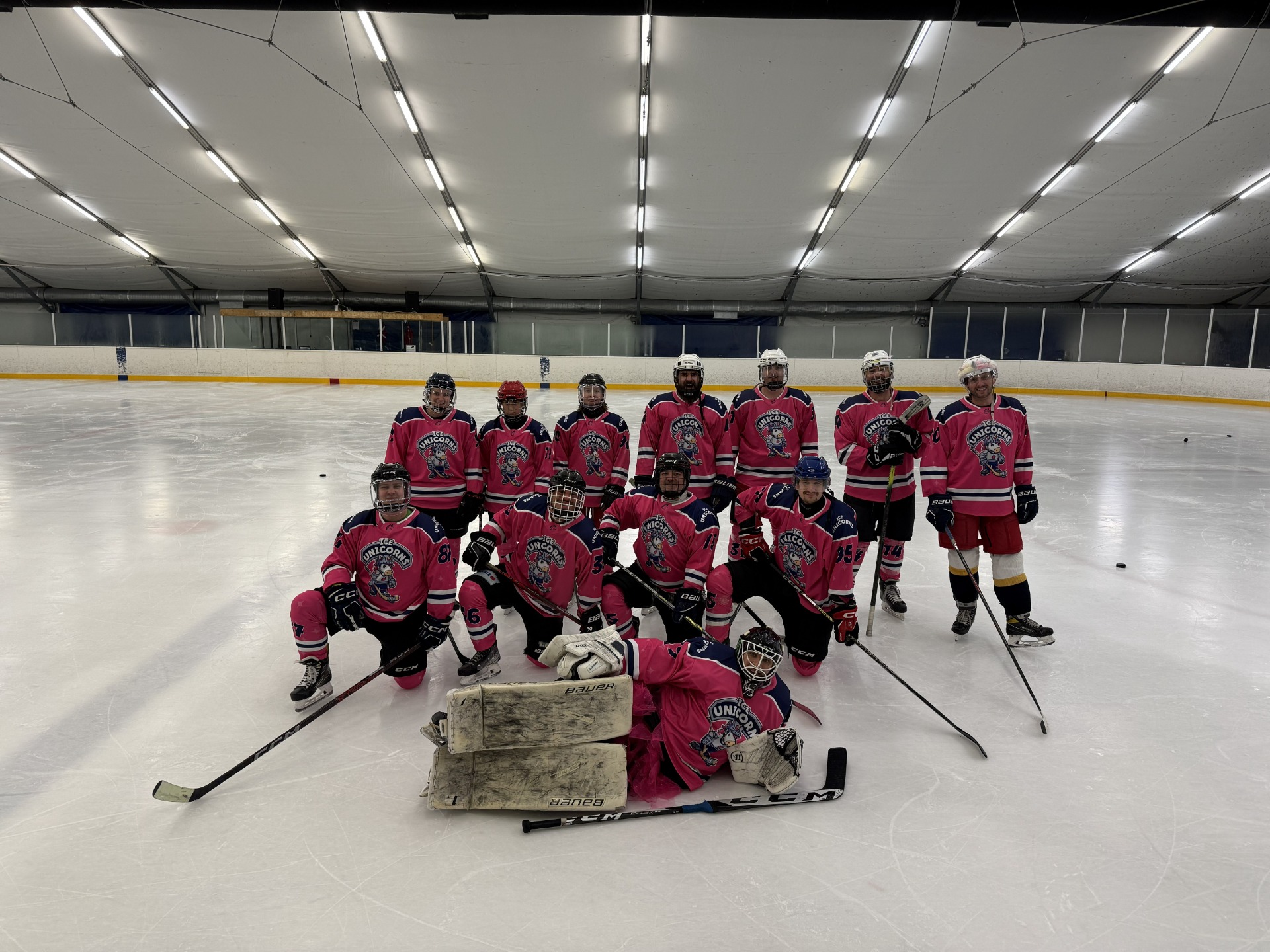 Először csak jeget akartunk, meg jó társaságot - de 2025.12.28-án már (fél-) hivatalosan is debütáltunk: jóbarátaink a Jégkert SE Jégkásáinak barátságos, évzáró tornáján szerepeltünk: pengéig rózsaszínben tündökölve.